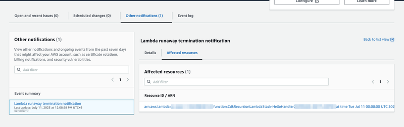 other notificationssection with details and link to lambda function.