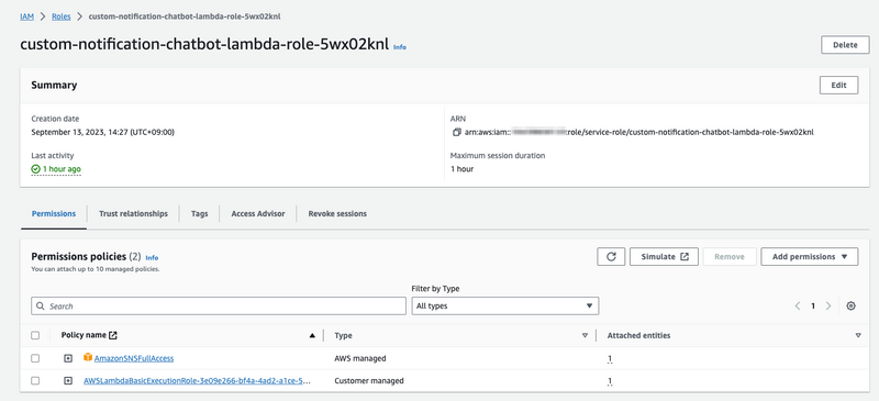 - I have attached permissions of full access sns to lambda role so that lambda can send notifications to sns topic directly. From a security point of view you should limit access to only required SNS topic.