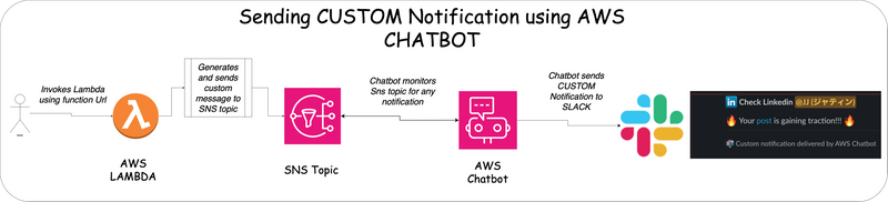 - As we saw in architecture pattern we need 3 things to implement and test out custom notification: AWS Lambda, sns topic and chatbot configured for the slack channel