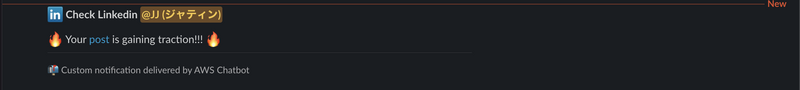 "description": ":fire: Your <https://www.linkedin.com/posts/jatinmehrotra_custom-notifications-are-now-available-for-activity-7107541447716814848-dAAv?utm_source=share&utm_medium=member_desktop|post> is gaining traction!!! :fire:",