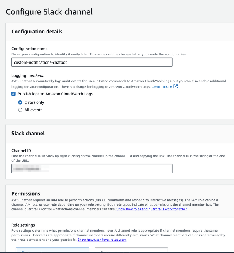- In order to set up AWS chatbot client for Slack and slack channel, follow the steps mentioned here in docs.