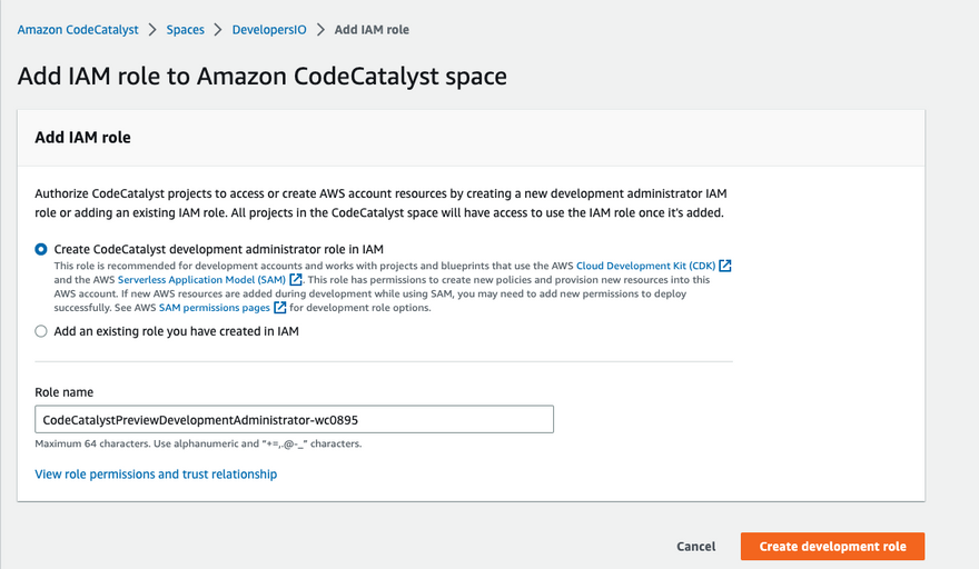 Note: If you don't add the role to your project, workflows will not able to run as they need permissions in order to interact with various AWS services.