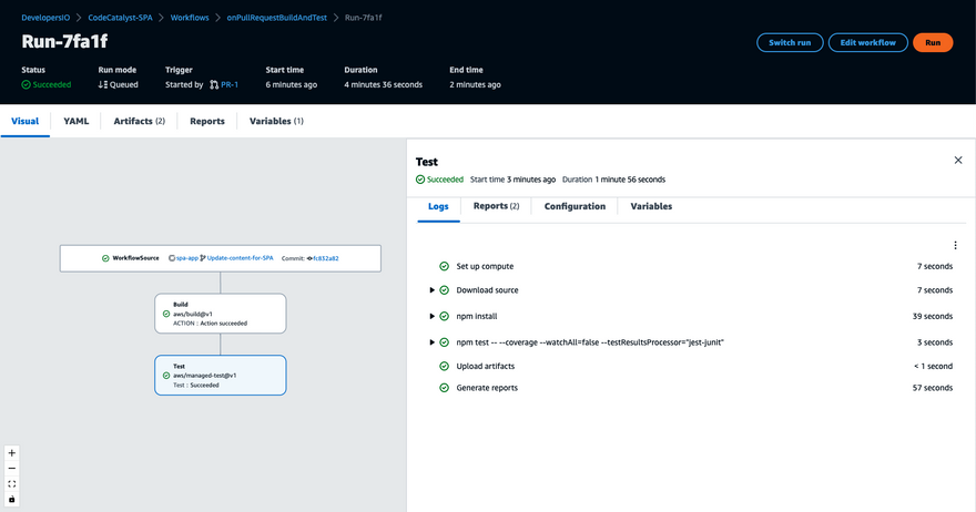 - After PR is created workflow for build and test will run. You can even see the workflow by clicking on its link.