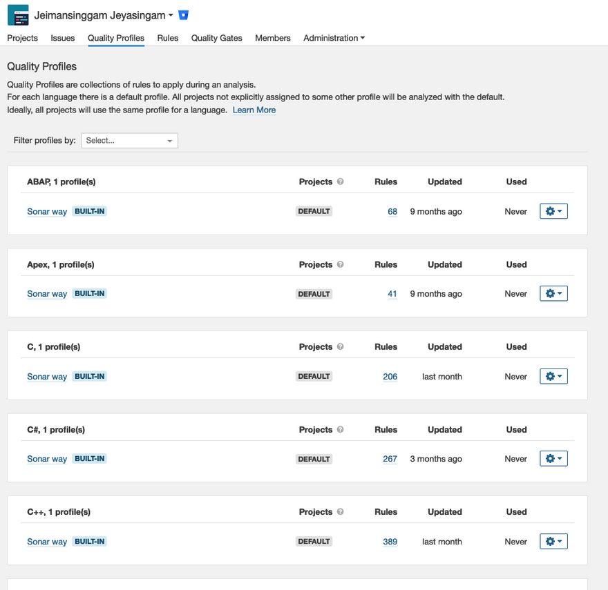 Quality profiles as you may have guessed it are programming language rules that are applied during code analysis. By default, the programming languages that are supported on Sonar Cloud have a built-in profile, called "Sonar way", using the standard best practices that are currently in the market. Although the "Sonar way" is best suited for most projects, there are cases where engineering tribes would want to customise their profiles that best suit their needs.