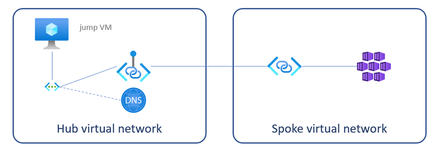 infra/modules/forwarder/forwarder-spoke-privatelink.bicep: a Private Endpoint in the Spoke network connecting to the Private Link Server paired with a Private DNS zone to allow for name resolution -