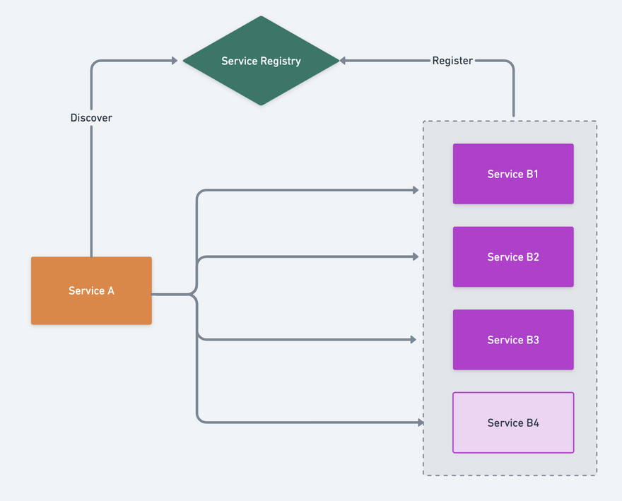 Service Bregisters itself to theService Registrycalled Service Registration -