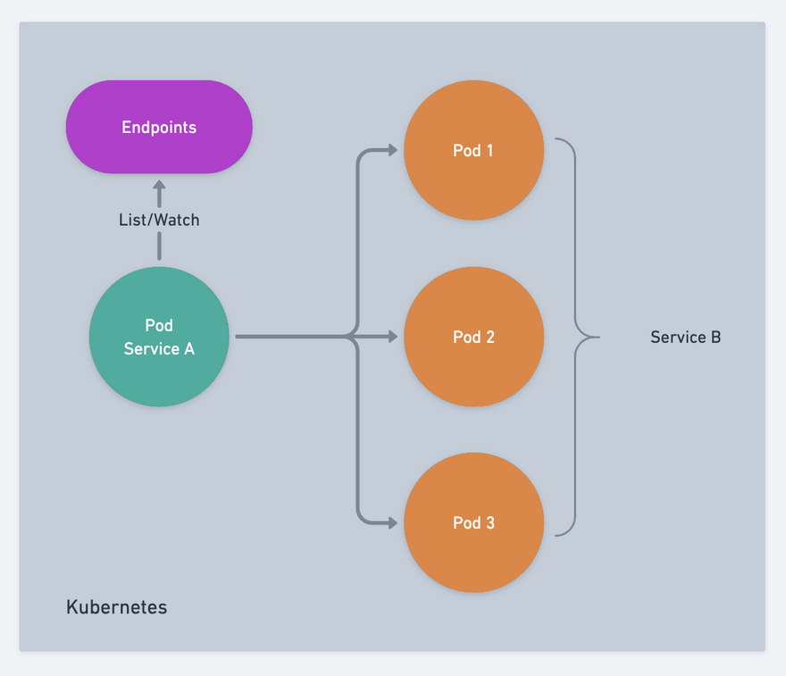 PodofService Bwill register itself to theEndpointsof the cluster when it starts - When each