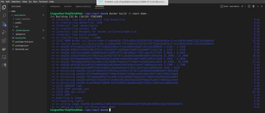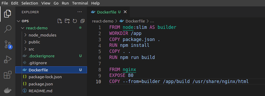 Above react container is running as development server Now we will create production grade image using below docker file.