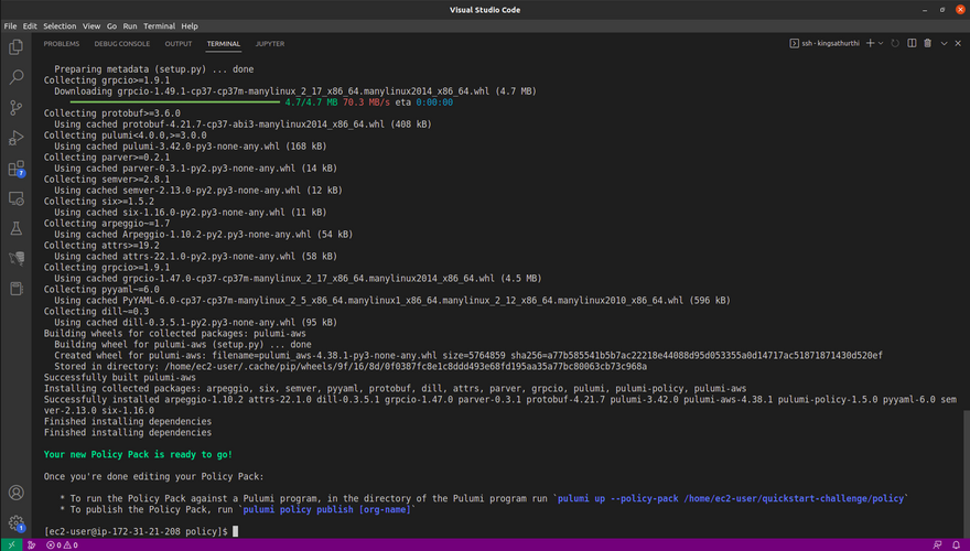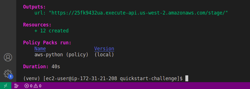 The default Policy Pack prevents developers from allowing public read access on an AWS S3 bucket but that isn’t what we need here. Replace the contents of the new main.py in the directory /home/ec2-user/quickstart-challenge/policy with the following