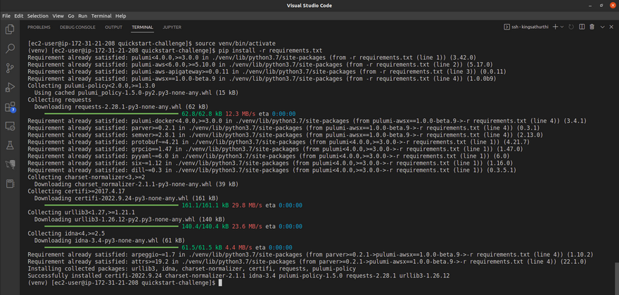 Once updated the requirements.txt run the below pip install command in the virtual environment.