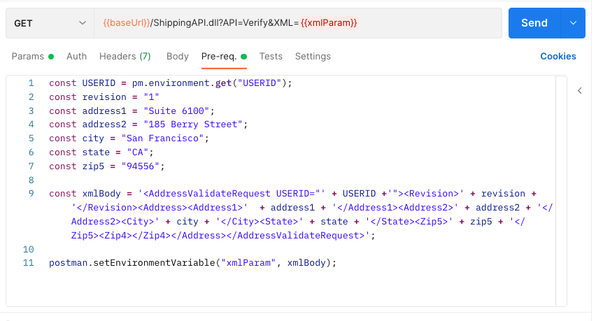 For example, <AddressValidateRequest USERID="{WEB_TOOLS_USERNAME}">