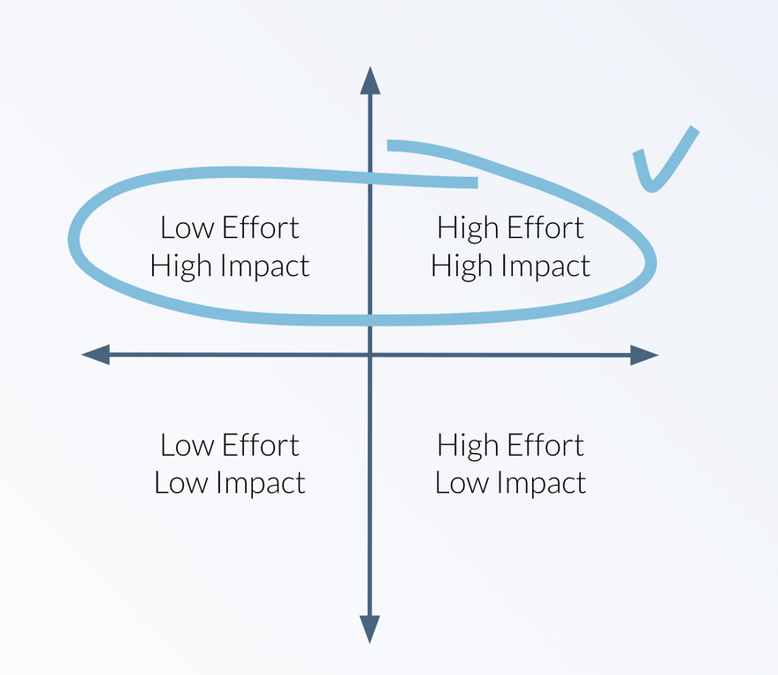 In the book _Staff Engineer _by Will Larson (which I highly recommend) he references a quadrant of impact versus effort.