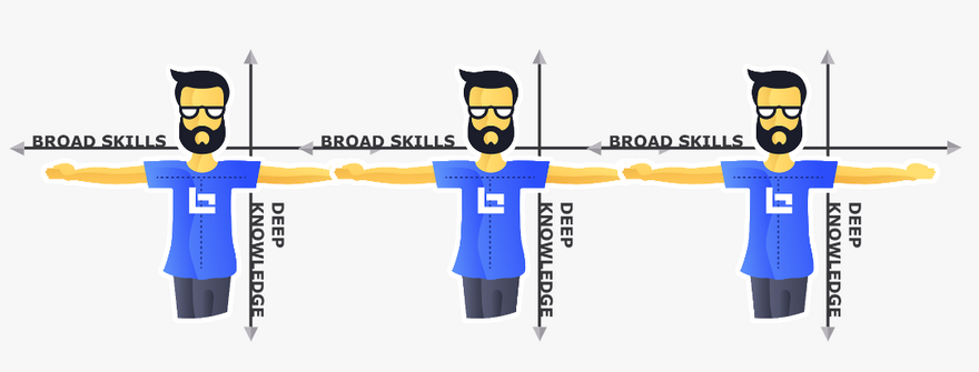 While generalists know a little about a lot of subjects, and I-shaped employees are experts in a single area, a T-shaped person is a subject-matter expert in at least one area and knowledgeable or skilled in several others.