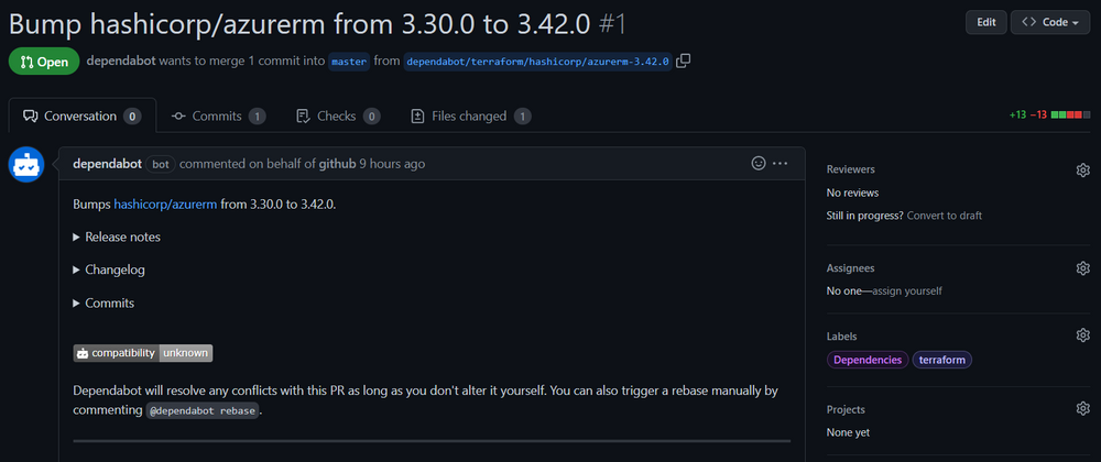 First I want to let you know I have a hard time keeping track of my projects dependencies, specially if it is something I don't update often, and it might be too late when I finally find out something I'm using is no longer supported, so I was glad to find out about GitHub's way of dealing with this.