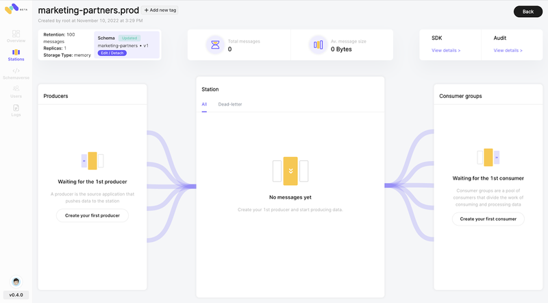 Avoid schema drifting means that you want to enforce a particular schema on a topic or station and validate each produced data. This tutorial assumes that you are using Confluent cloud with registry configured. If not, here is a Confluent article on how to install the self-managed version (without enhanced features).