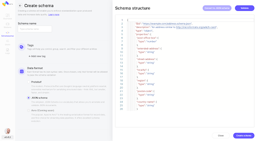 - Support Avro, JSON Schema, and protobuf