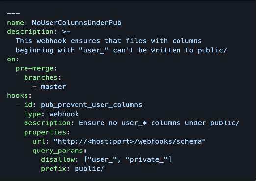 You can configure lakeFS hooks to check for specific table schema while merging data from development or test data branches to production. That is, a pre-merge hook can be configured on the production branch for schema validation. If the hook run fails, it causes lakeFS to block the merge operation from happening.