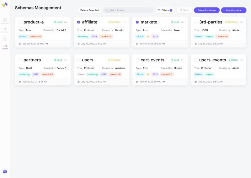 Memphis Schemaverse provides a robust schema store and schema management layer on top of the memphis broker without a standalone compute or dedicated resources. With a unique and modern UI and programmatic approach, technical and non-technical users can create and define different schemas, attach the schema to multiple stations and choose if the schema should be enforced or not.