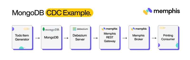 The implementation tutorial is available in the mongodb-debezium-cdc-example directory of the Memphis Example Solutions repository. Docker Compose will be needed to run it.