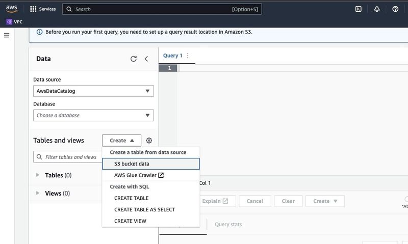 Go to the Amazon Athena in AWS Console.