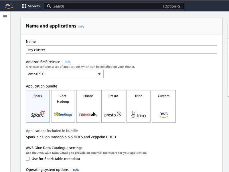 Under "Application bundle", select Spark to install it on your cluster.