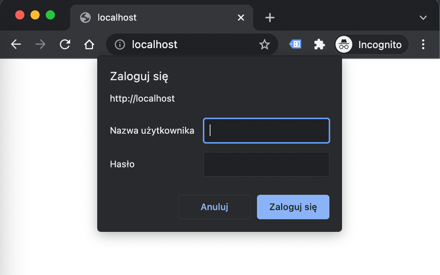 If you open the page now, it will ask for credentials: