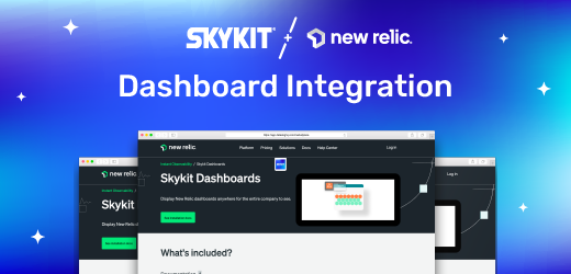 Our new integration with Skykit lets you display your New Relic dashboards to any TV, monitor, or digital screen—no matter where they are located. Skykit’s cloud-based digital signage software solves a critical challenge many IT teams face in securely authenticating data visualization and monitoring tools to digital screens at scale.