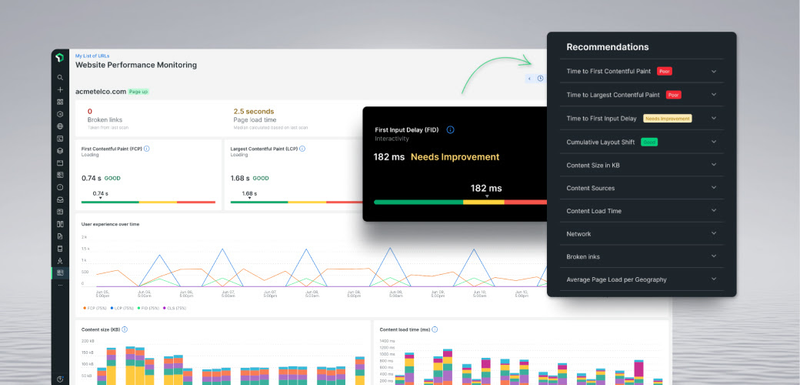 Don’t let slow pages and broken links frustrate users and hurt conversions. Automatically monitor your site with scheduled performance tests and get alerts when things break. No more tedious one-time checks; enter a URL for free continuous tracking.
