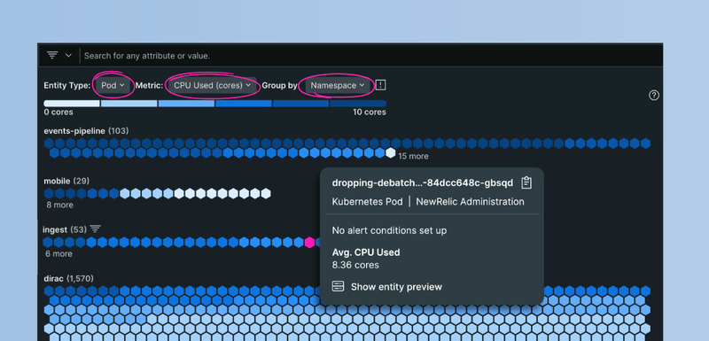 We’ve completely rebuilt our Kubernetes UI to scale for large clusters, allowing you to analyze your data dynamically and more granularly to isolate performance issues.