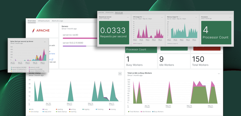 The Apache HTTP Server is a free and open-source web server, popular for its scalability and extensibility. Keep your server performing with full visibility into requests, connections, worker status, and more with our pre-built dashboard and alerts.