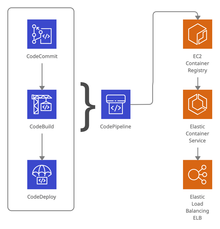 - CodeDeploy to orchestrate the deployment and traffic allocation to ECS