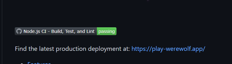 What's also neat about GitHub Actions is that it provides you with a badge code you can put into your repo's README.md, which gives a dynamic status of if your repo has recently passed its tests.