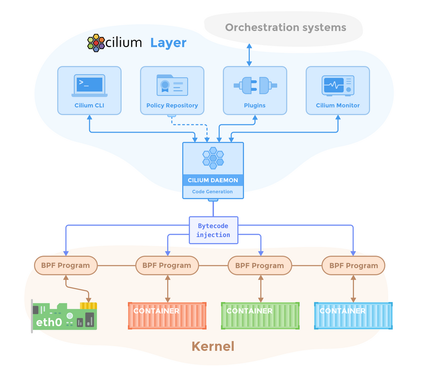 namespaces,cgroups, andseccomp, Cilium is to the eBPF: the appropriate abstraction layer above it.