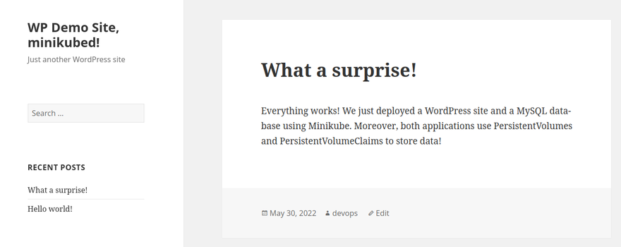 Well, we'll start with this: install Minikube, launch a cluster and deploy in it something [painfully familiar, but] popular. More on that below.