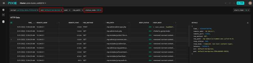 The involved sripts are px/http_data_filtered and `px/http_request_stats.