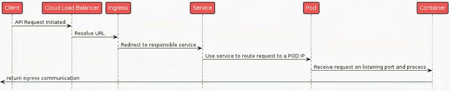 Consider making an HTTP(s) call to an API running on a cloud provider's Kubernetes cluster. A simplified sequence diagram (drawn by Piotr Zaniewski) is shown below, with crucial parts highlighted: