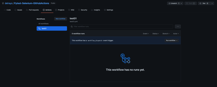 Now we just have to go to the actions section on github, select the workflow named test01 and click on the button run workflow.
