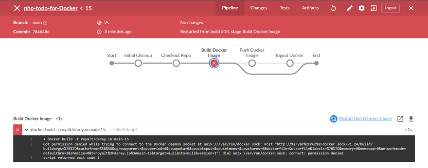 Also, I'd like to add that it is important you run docker without sudo especially in a Jenkins Job as it would throw errors as seen below.