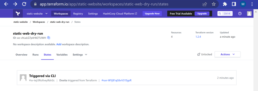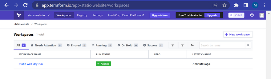 terraform { cloud { organization = "static-website" workspaces { name = "static-web-dry-run" } } }