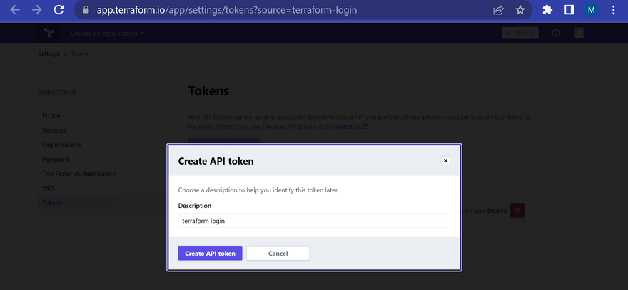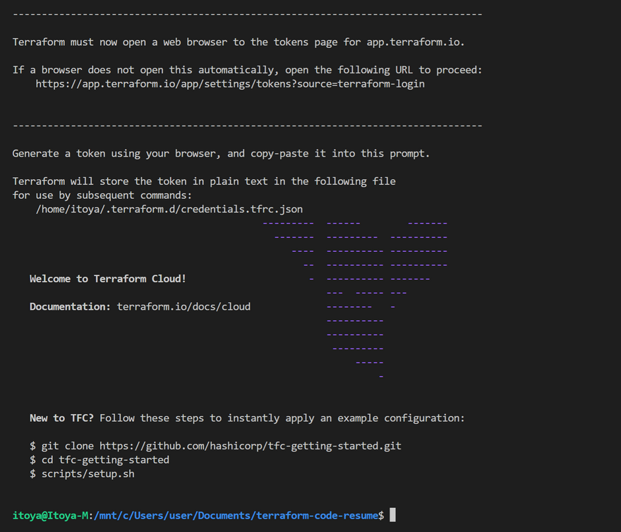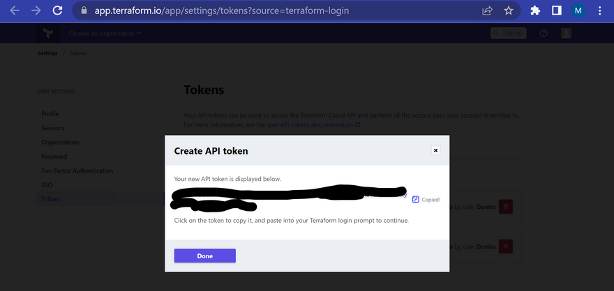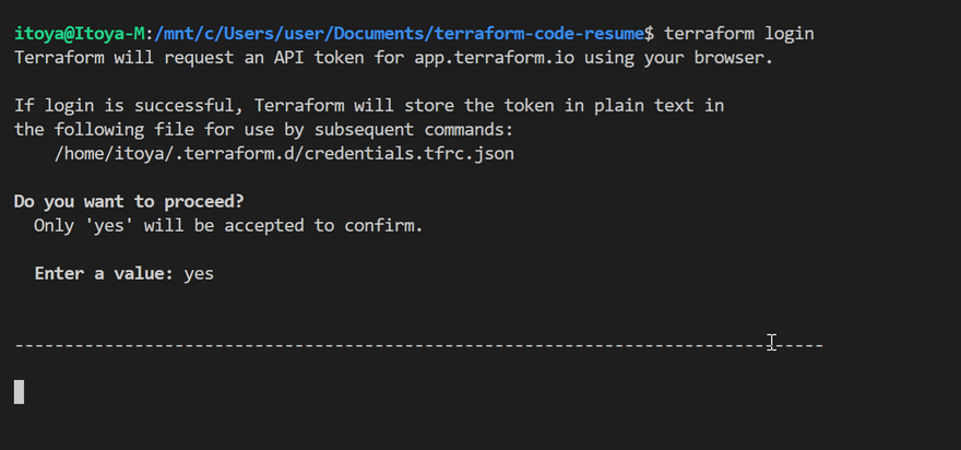 terraform login- Follow the prompt and set up the API keys which would be used for authentication