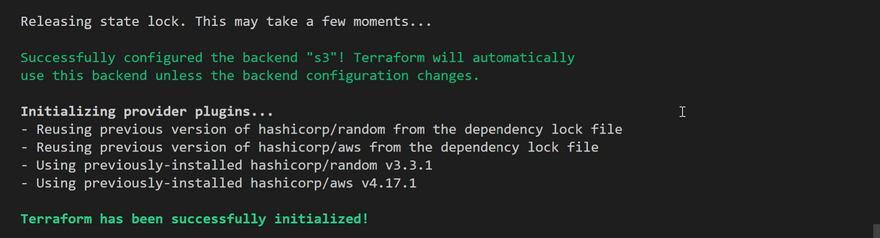 Now, Runterraform initand confirm you are OK to change the backend by typing 'yes' Verify the changes - Checking AWS, the following will be noted: tfstatefile is now inside the S3 bucket