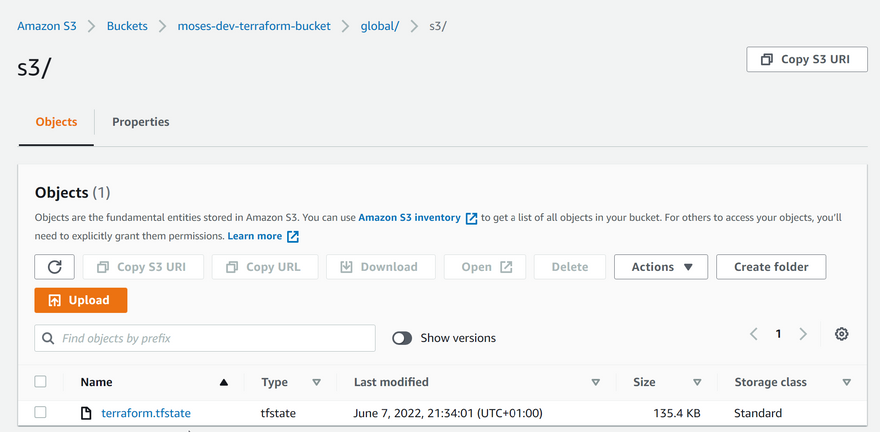 Terraform will automatically read the latest state from the S3 bucket to determine the current state of the infrastructure. Even if another engineer has applied changes, the state file will always be up to date. Check the tfstate file in S3 and click the version tab to see the different versions of the tfstate file.
