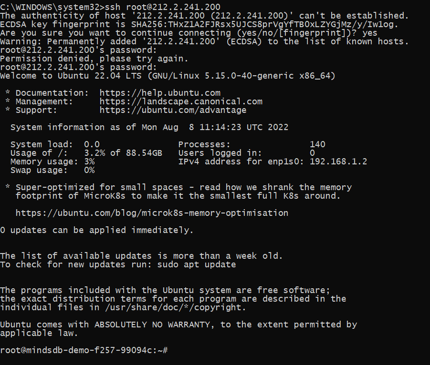 Step 1: SSH into your compute instance using the terminal of your system. Open your terminal and type the command below to get access into your instance. Type Y or Yes when prompted and hit Enter to proceed.