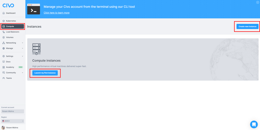 Now lets get started by creating a Civo Compute instance. Follow the steps as listed below.