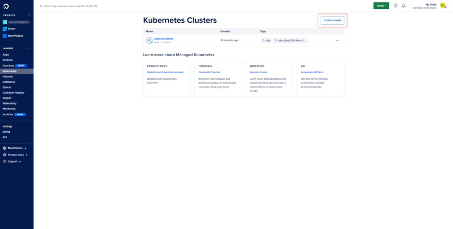 Digital Ocean is a cloud hosting provider that offers cloud computing solutions and IaaS on the core principles of high scalability, reliability, and affordable pay-as-you-use pricing models. Now let's go ahead and create a cluster with the below-mentioned steps.