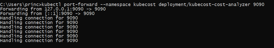 kubectl port-forward --namespace kubecost deployment/kubecost-cost-analyzer 9090