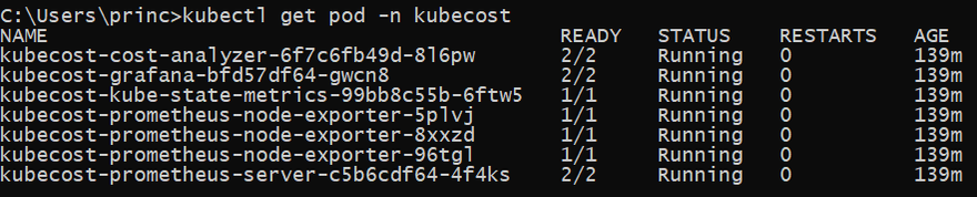 Step 3: We have to now check the pods in the kubecost namespace and wait till all of them are in a running state.