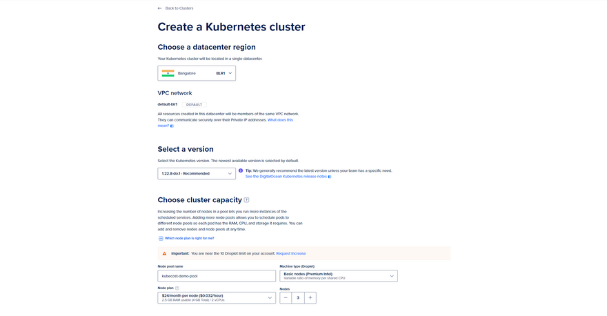 Choose a datacenter region - Choose the one closest to you (BLR1 for me)