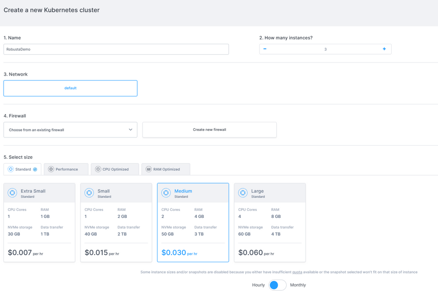 Select Size: Standard (Medium- 2CPU Cores/4GB RAM)