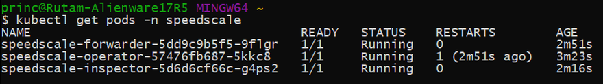 Step 4: Now let's check the pods to confirm whether the Speedscale charts are deployed or not.